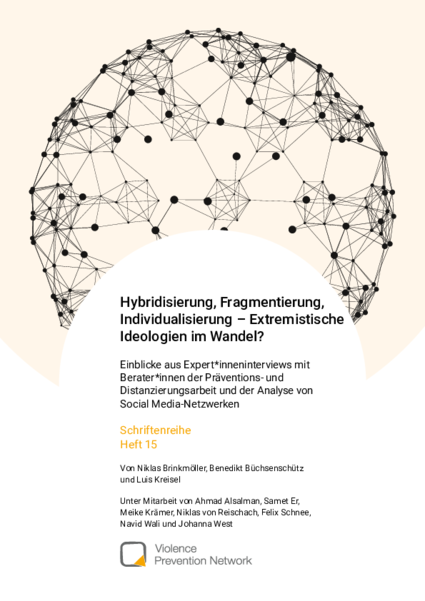 The publication series issue #15 examines the structure, dissemination and reception of extremist content on social networks in relation to hybridisation, based on a network analysis of 924 German-language Instagram accounts and a thematic analysis of eight expert interviews from the field of prevention and disengagement work. The accounts were categorised by the project team in a multi-stage process according to content, format and gender read. The interviews were evaluated using thematic analysis in MAXQDA, which enabled the derivation of a category system.